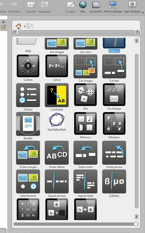Nella BIBLIOTECA a destra dello schermo c’è la cartella INTERATTIVITA’ in cui si trovano strumenti didattici che offrono la possibilità di eseguire una vasta gamma di esercizi.